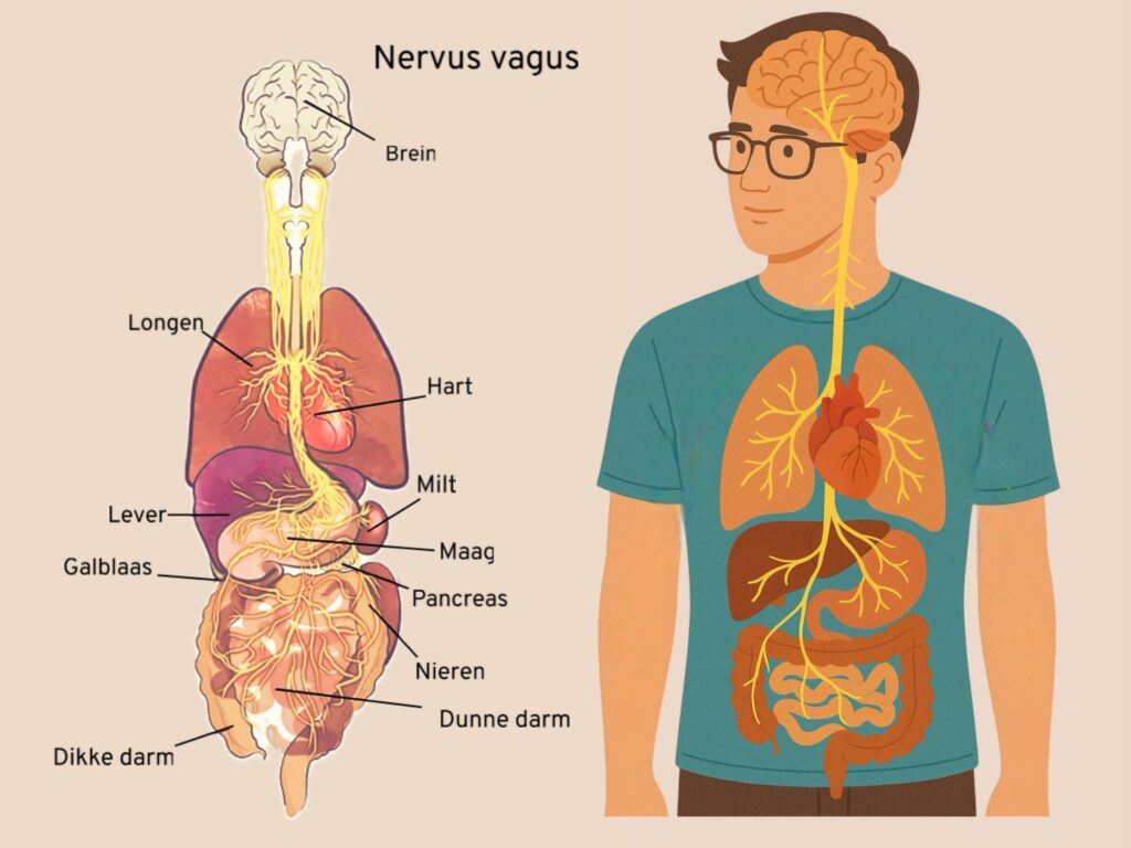 De polyvagaal theorie laat zien hoe ons zenuwstelsel – vooral de nervus vagus- invloed heeft op hoe we ons voelen en hoe we ons gedragen. Deze theorie, ontwikkeld door dr. Stephen Porges, beschrijft de verschillende standen waarin ons lichaam en brein kunnen staan, en hoe die ons dagelijks leven en ons welzijn beïnvloeden. Ons zenuwstelsel scant voortdurend of we veilig zijn of niet. Als er spanning of gevaar dreigt, schakelt het automatisch over naar oeroude overlevingspatronen: vechten, vluchten of bevriezen. Dat gebeurt vaak sneller dan we zelf doorhebben.